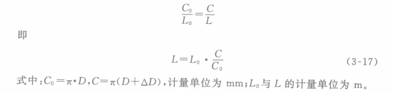 設(shè)牽引輪的標(biāo)稱周長(zhǎng)為Co,實(shí)際周長(zhǎng)為C,米數(shù)表對(duì)應(yīng)于標(biāo)稱周長(zhǎng)所測(cè)得的長(zhǎng)度為L(zhǎng)。,對(duì)應(yīng)于實(shí)際周長(zhǎng)所測(cè)得的長(zhǎng)度為L(zhǎng),則: