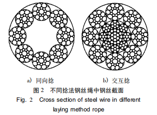 1問題提出 鋼絲繩捻法通常有交互捻、同向捻和混合捻,其中交互捻應用最多,混合捻應用最少,同向捻應用居中。雖然同向捻應用不如交互捻普及,但除受結構限制鋼絲繩必須為同向