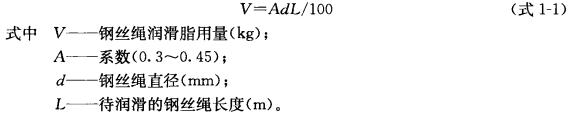 根據(jù)經(jīng)驗,鋼絲繩潤滑脂的用量可按鋼絲繩直徑和鋼絲繩長度加以估算,其計算公式如下: