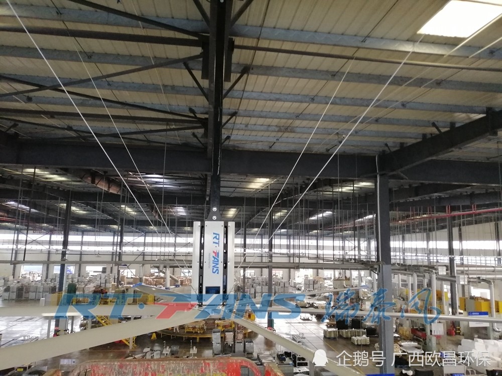 工業大風扇在安裝時,連接底座與工字鋼梁使用1000KG拉力強度鋼絲繩纏繞,防止風扇整體結構滑動及墜落,并有四根鋼絲繩利用平衡原理與建筑物牽引固定,防止風扇整機受外力及氣流作用晃動及墜落。