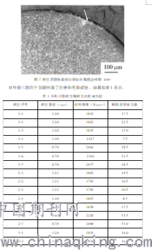 圖7為光學顯微鏡下觀察到的用于制造鋼絲繩的索氏體化處理的碳素鋼鋼絲的金相圖。在其斷面結構中發現一個徑向裂紋,深度約為50μm。裂紋周圍的脫碳基質表明,此缺陷來源于線材的制造過程,它可能是疲勞裂紋的擴展源。