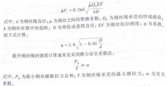 式中,P,為最小鋼絲破斷拉力總和;T為鋼絲繩承受的最大靜拉力;m為安全系數。靜力安全系數法完全沒有考慮鋼絲繩結構的復雜性,以及鋼絲繩中實際應力的分布狀態,是帶有假定性質的。一般來說,在同一個使用工況下,不同結構鋼絲繩具有不同的使用期限,對它們規定為同一個安全系數是不確切的。按假定的安全系數來選擇鋼絲繩沒有實際應用價值,早就希望在工程技術中,有較完善的提升鋼絲繩力學原理和強度理論,這種理論不僅用于提升鋼絲繩選擇計算,而且對于進一步完善鋼絲繩結構都是需要的。