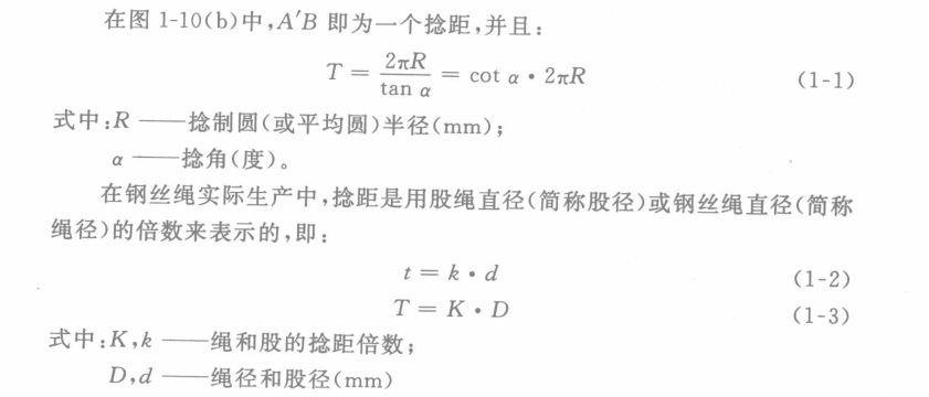 在捻制過程中,鋼絲或股繩由捻制設備的機身(筒體或筐籃絞盤)帶動作勻速圓周轉動,同時又被牽引輪帶動做勻速直線運動。因此,鋼絲在股中及股在鋼絲繩中均呈現圓柱螺旋線狀態,見圖1-10(a)。