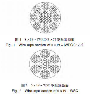 IWRC(7×7)與6×19-WSC的鋼絲繩斷面形狀分別如圖1、圖2所示,數據對比結果見表1。