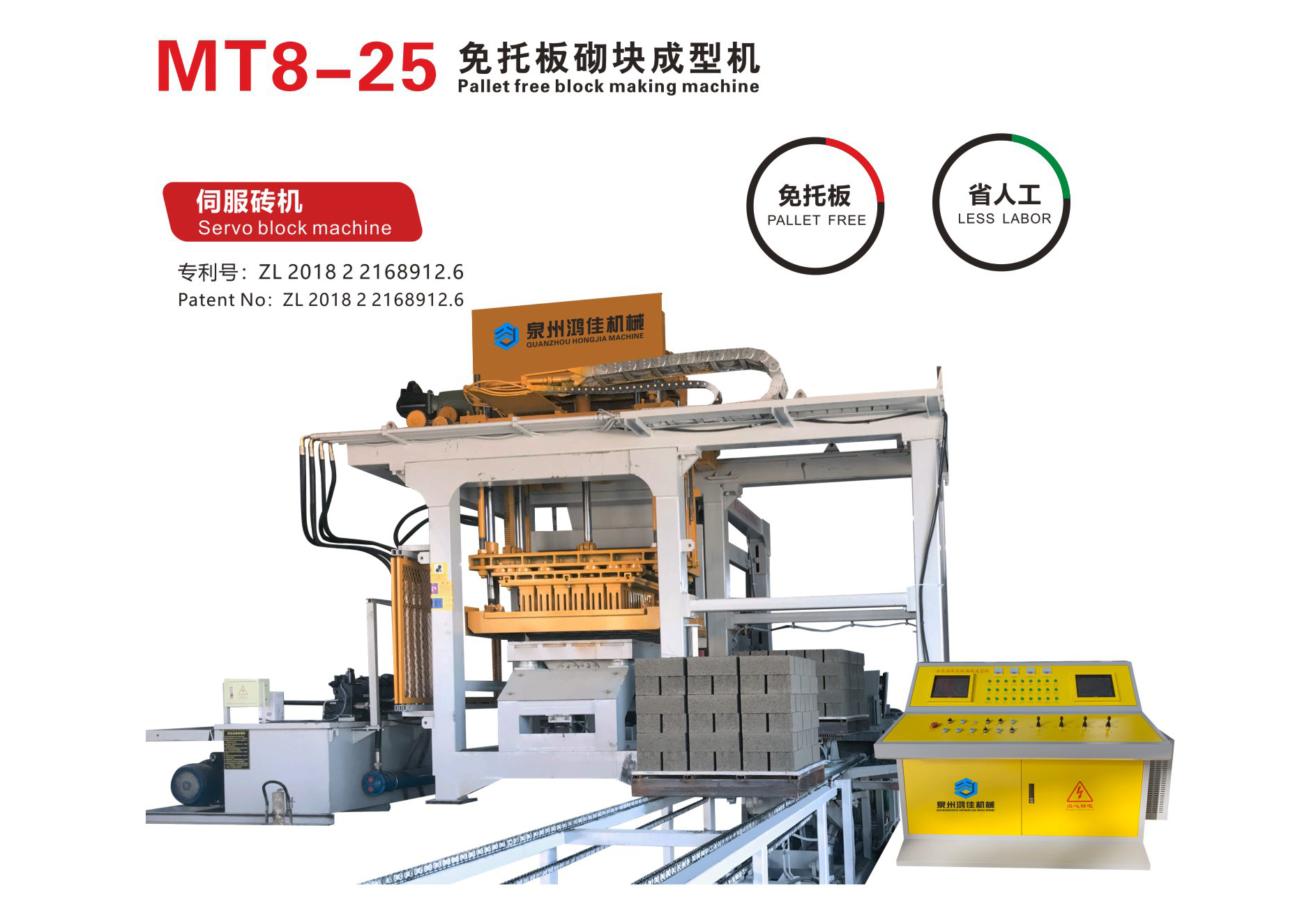 福建鴻佳機械 歡迎您!我們提供免托板磚機全自動混凝土磚機免燒磚機水泥磚機透水磚機靜壓磚機液壓磚機磚機配套攪拌機配料機全自動收磚機伺服磚機等設備。